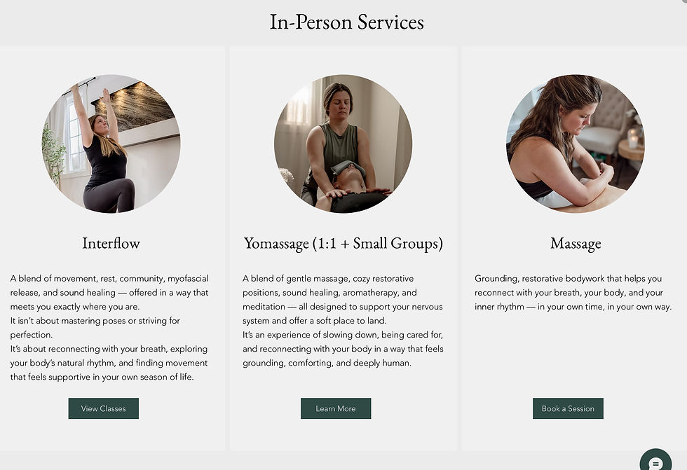 This website features UNIFY’s services, a blog, advertises the mobile app, allows for online booking, and features a shop with various wellness items for sale.